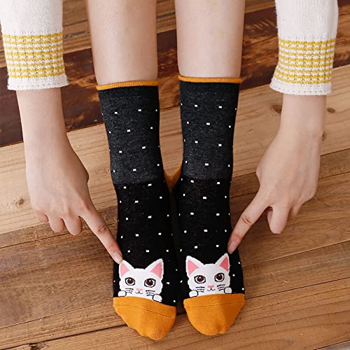 ZAKASA Cute Cat Design Socks for Women, 5 Pairs