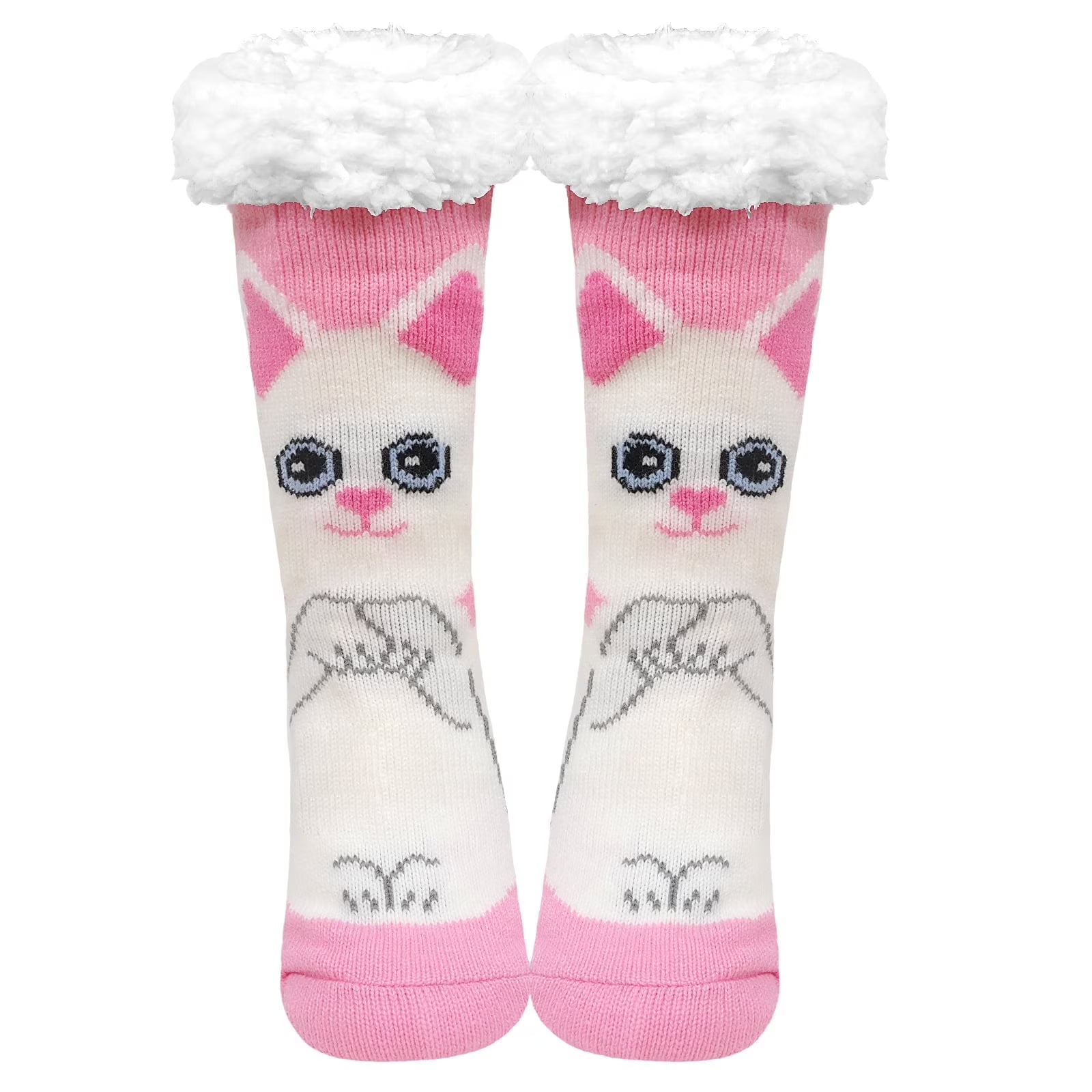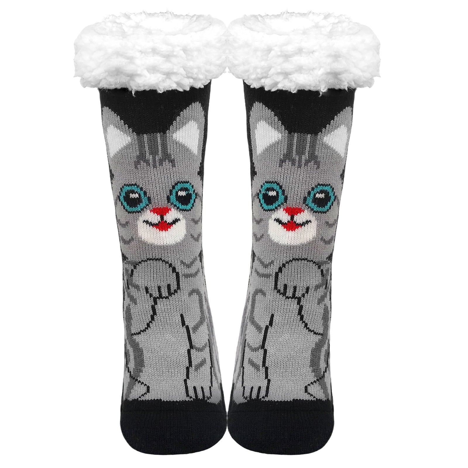 Womens Fuzzy Socks Cozy Fluffy Winter Slipper Socks with Grippers ,UNEEI Warm Thick Cat Pattern Non-Slip Winter House Socks, Size 9-12